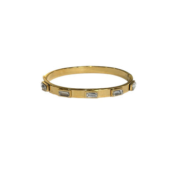A sleek bangle bracelet embedded with marquise and rectangular cubic zirconia. Secured by a side latch closure - lift latch, pinch ends, and pull apart to open.